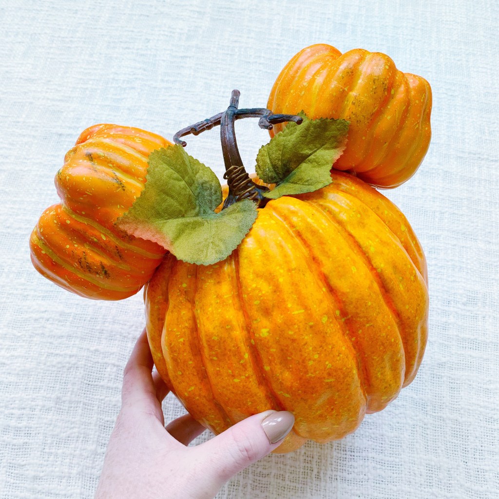 I found my pumpkins at Hobby Lobby and they were 40% off. In total, this pumpkin diy cost me less than $20 and took less than 20 minutes! Also – you may be able to find cheaper pumpkins! I just really loved the natural gourd look to these ones! So hunt for the best bargains and gather your supplies!