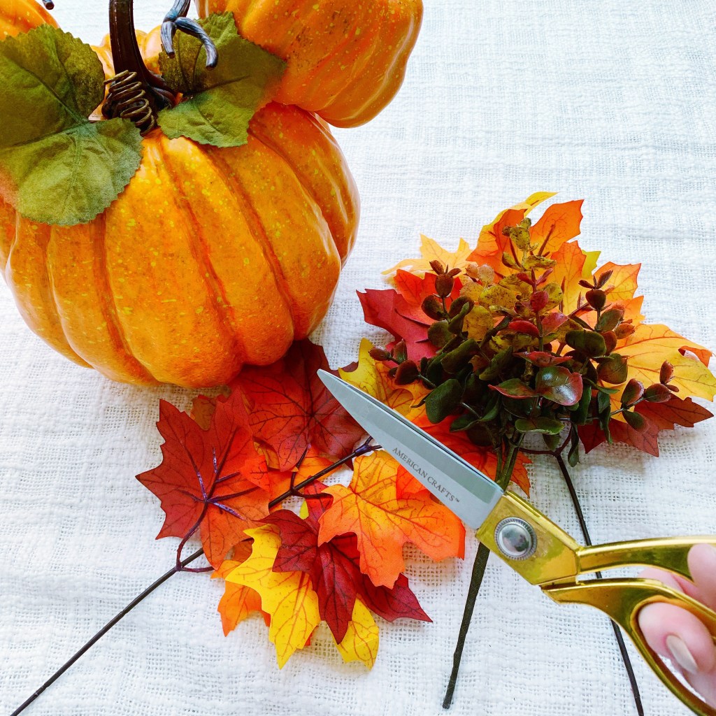 - Some fall colored leaves, greenery; anything you want to decorate your pumpkin. Something to give it a little extra pizazz! (Yes, I totally just used the word pizazz!)